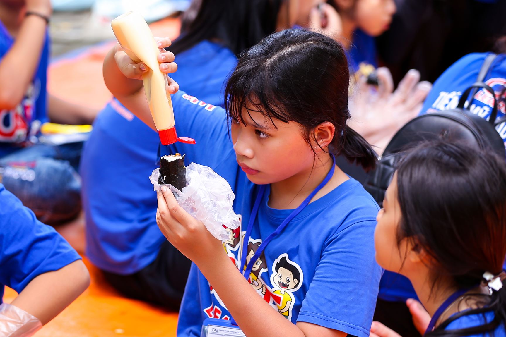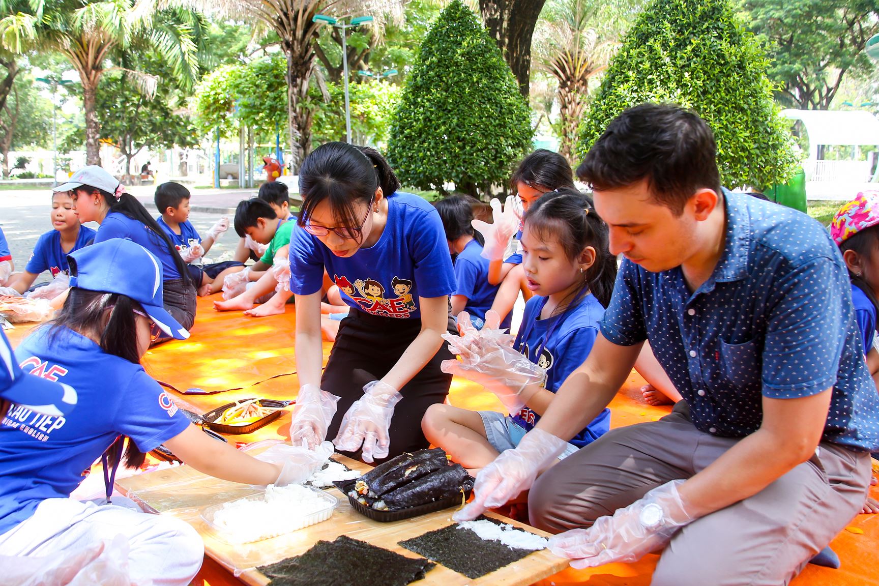 Sau khoảng thời gian vui chơi thoả thích chúng ta luôn cần phải nạp lại năng lượng đúng không nào? Với phương châm cung cấp cho bé những kỹ năng sống đơn giản và khả năng tự phục vụ vừa sức mình, các thầy cô CAE đã lồng ghép hoạt động làm cơm cuộn cùng các nguyên liệu được chuẩn bị sẵn, đảm bảo sạch sẽ và vệ sinh như: cơm, rong biển, trứng rán, cà rốt, xúc xích…